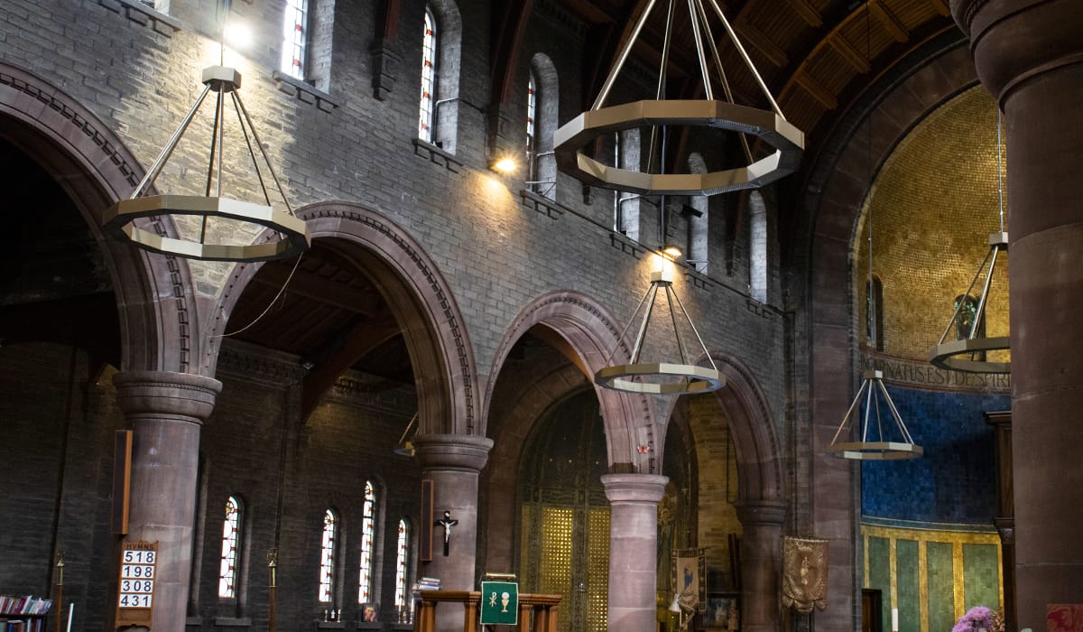 El Herschel Halo es nuestro innovador calefactor especializado de luz cero, diseñado para proporcionar a las iglesias y a los edificios del patrimonio una solución de calefacción neta cero, proporcionando un confort radiante rentable a la vez que se preservan y protegen los interiores y los artefactos históricos. El Halo ha sido diseñado en respuesta directa a la gran demanda. Tras una amplia investigación y desarrollo, Herschel fabrica el Halo en el Reino Unido, utilizando acero de fabricación británica junto con aluminio de calidad aeroespacial. Bellamente diseñado para complementar la estética del patrimonio, Halo se suspende de los techos altos para calentar eficazmente los espacios difíciles de calentar. Al emitir calor sin luz mediante tecnología radiante de infrarrojos lejanos, Halo calienta de forma directa, suave y segura a las personas, los objetos y el edificio, en lugar de calentar volúmenes de aire como los calefactores de convección alternativos. Con la opción de añadir luces LED regulables y sorprendentes acabados decorativos, el Halo proporciona la solución de calefacción ideal para lugares de culto, propiedades protegidas, teatros, vestíbulos de hoteles y grandes espacios industriales.